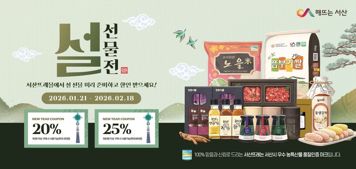 [충청뉴스큐] 충남 서산시는 설 명절을 맞아 농특산물 온라인 특판전을 진행 중이라고 밝혔다.