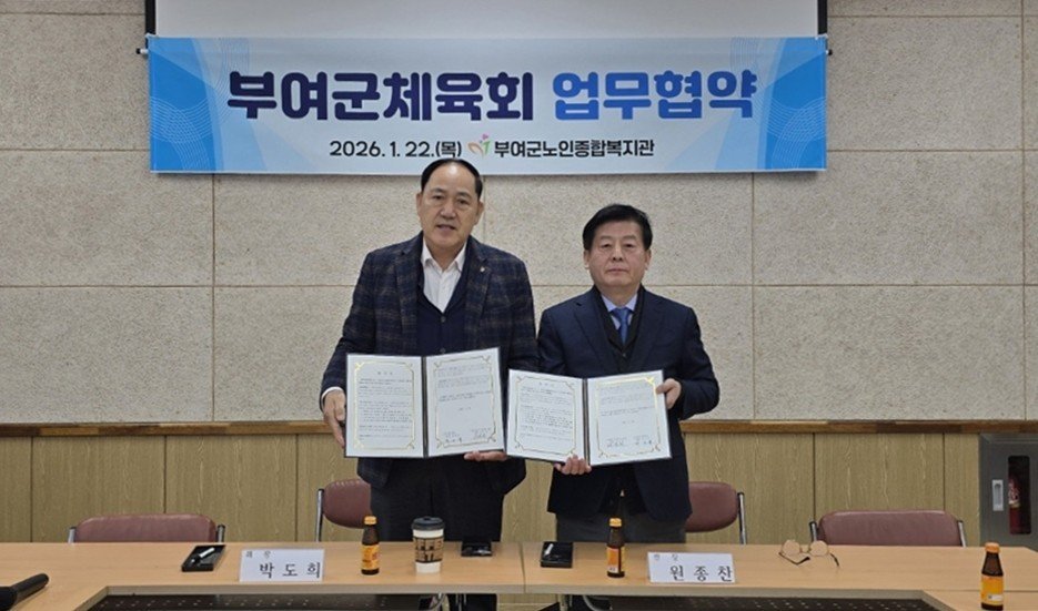 [충청뉴스큐] 부여군노인종합복지관과 부여군체육회는 부여군노인종합복지관에서 어르신 생활체육 활성화와 건강 증진을 위한 업무협약을 체결했다고 27일 밝혔다.