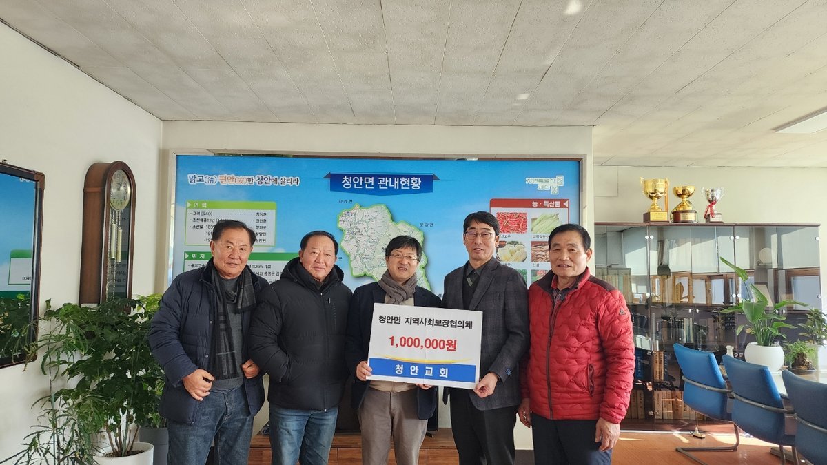 손기철 면장은 "청안교회와 교인들이 지역사회 어려운 이웃들을 위해 따뜻한 나눔을 실천해 주신 것에 깊이 감사드린다"며 "모아주신 따뜻한 마음이관내 어려운 주민들에게 실질적인 도움이 될 수 있도록 최선을 다하겠다"고 말했다.