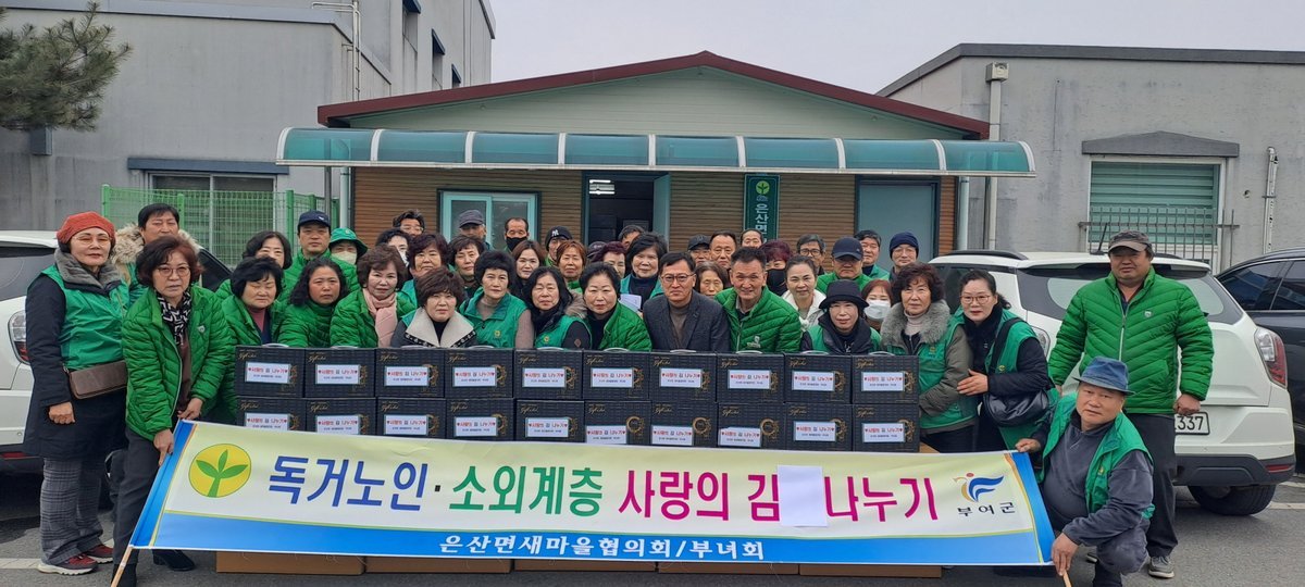 [충청뉴스큐] 부여군 은산면 새마을협의회·부녀회는 새해를 맞이해 추운 날씨 속에서도 소외계층을 위한 ‘사랑의 김 나누기’행사를 진행했다고 28일 밝혔다.