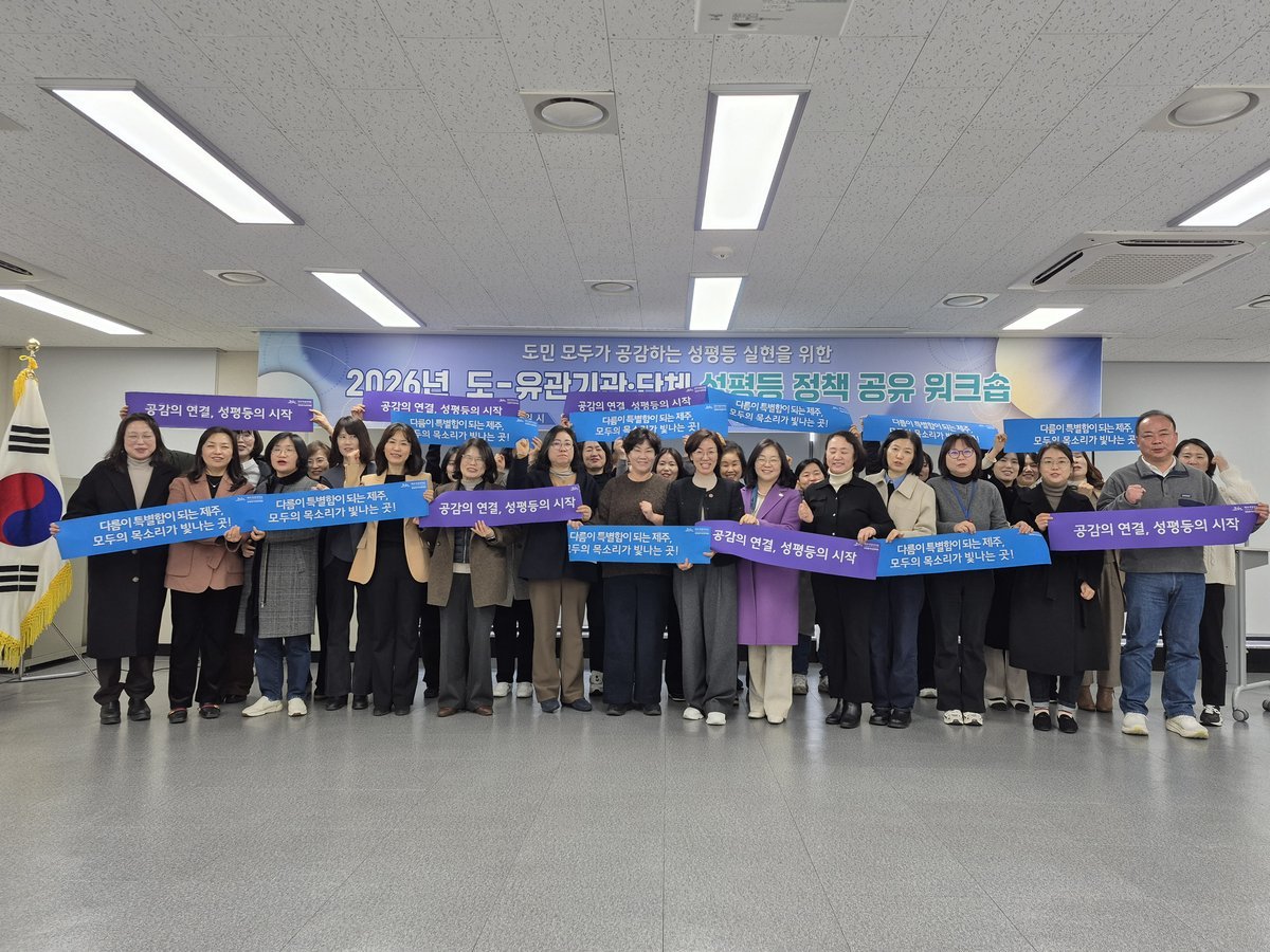 [충청뉴스큐] 제주특별자치도는 30일 제주복지이음마루에서 도내 성평등·여성 관련 유관기관 및 단체와 함께 도민 모두가 공감하는 성평등 실현을 위한 ‘2026년 도–유관기관·단체 성평등 정책 공유 워크숍’을 개최했다고 밝혔다.