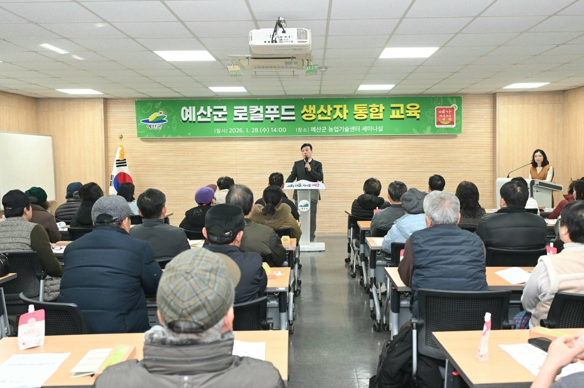 [충청뉴스큐] 예산군은 농업기술센터 세미나실에서 로컬푸드 직매장 출하 농가를 대상으로 2026년 로컬푸드 생산자 통합 교육을 실시했다고 2일 밝혔다.