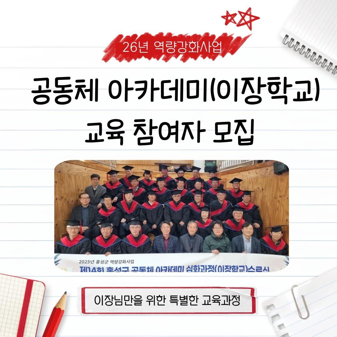 [충청뉴스큐] 홍성군 마을만들기지원센터는 마을 운영과 의사결정의 핵심 주체인 마을리더의 역량 강화를 위해 공동체 아카데미 심화과정 ‘이장학교’참여자를 모집한다.