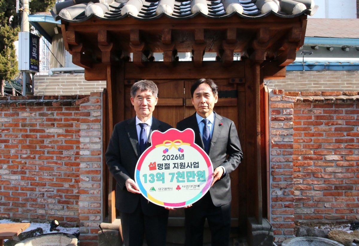 [충청뉴스큐] 일 시 : 2026년 2월 2일 오후 2시 장 소 : 스타벅스 대구종로점 주요내용 - 대구광역시와 대구사회복지공동모금회는 다가오는 설 명절을 맞아 2월 2일 스타벅스 대구종로점에서 ‘2026년 설 명절 지원사업’전달식을 가졌다.