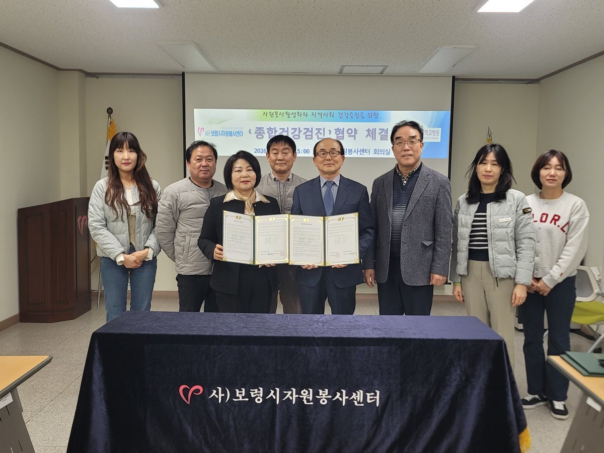 [충청뉴스큐] 보령시자원봉사센터는 3일 우수자원봉사자들의 건강관리를 위해 자원봉사센터 회의실에서 건양대학교병원과 ‘종합건강검진 협약’을 체결했다.