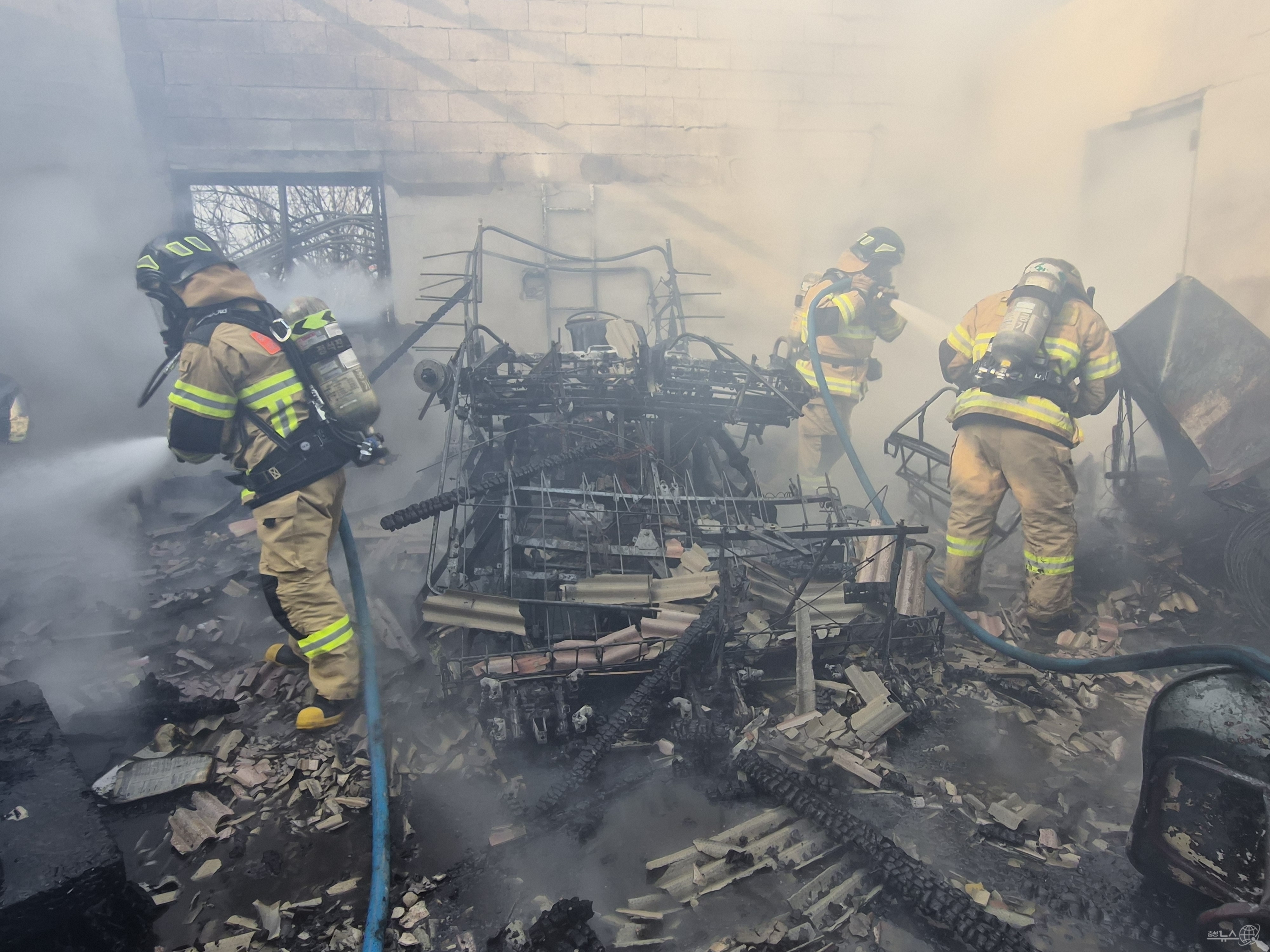 소방서에 따르면 이날 화재는 고덕면 상궁리 농자재 창고에서 불꽃과 검은 연기가 다량으로 발생하며 시작됐다. 예산소방서는 즉각 소방차량 19대와 대원 56명을 투입해 화재를 완전히 진압했다.