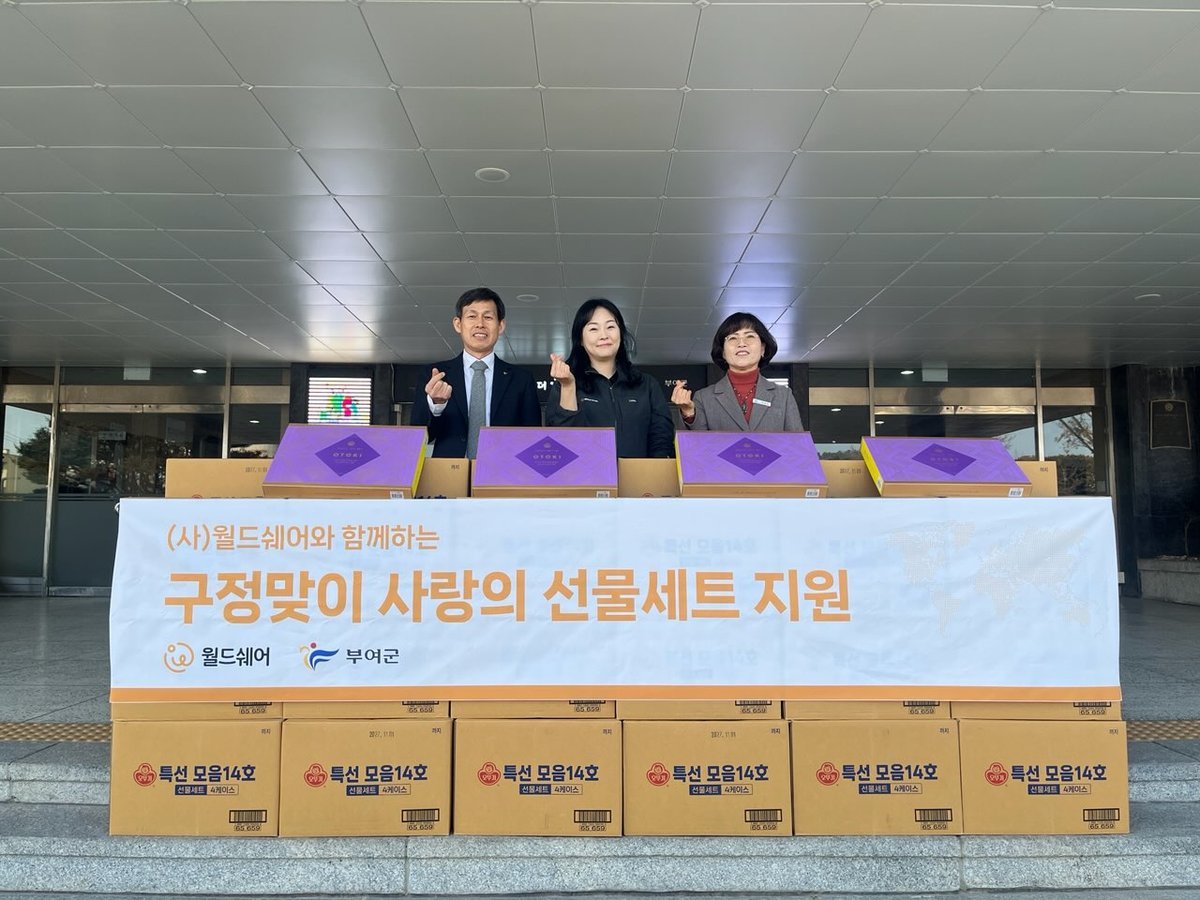 [충청뉴스큐] 국제구호개발 NGO 월드쉐어는 설 명절을 맞아 선물 세트 150개를 부여군에 기탁했다고 5일 밝혔다.