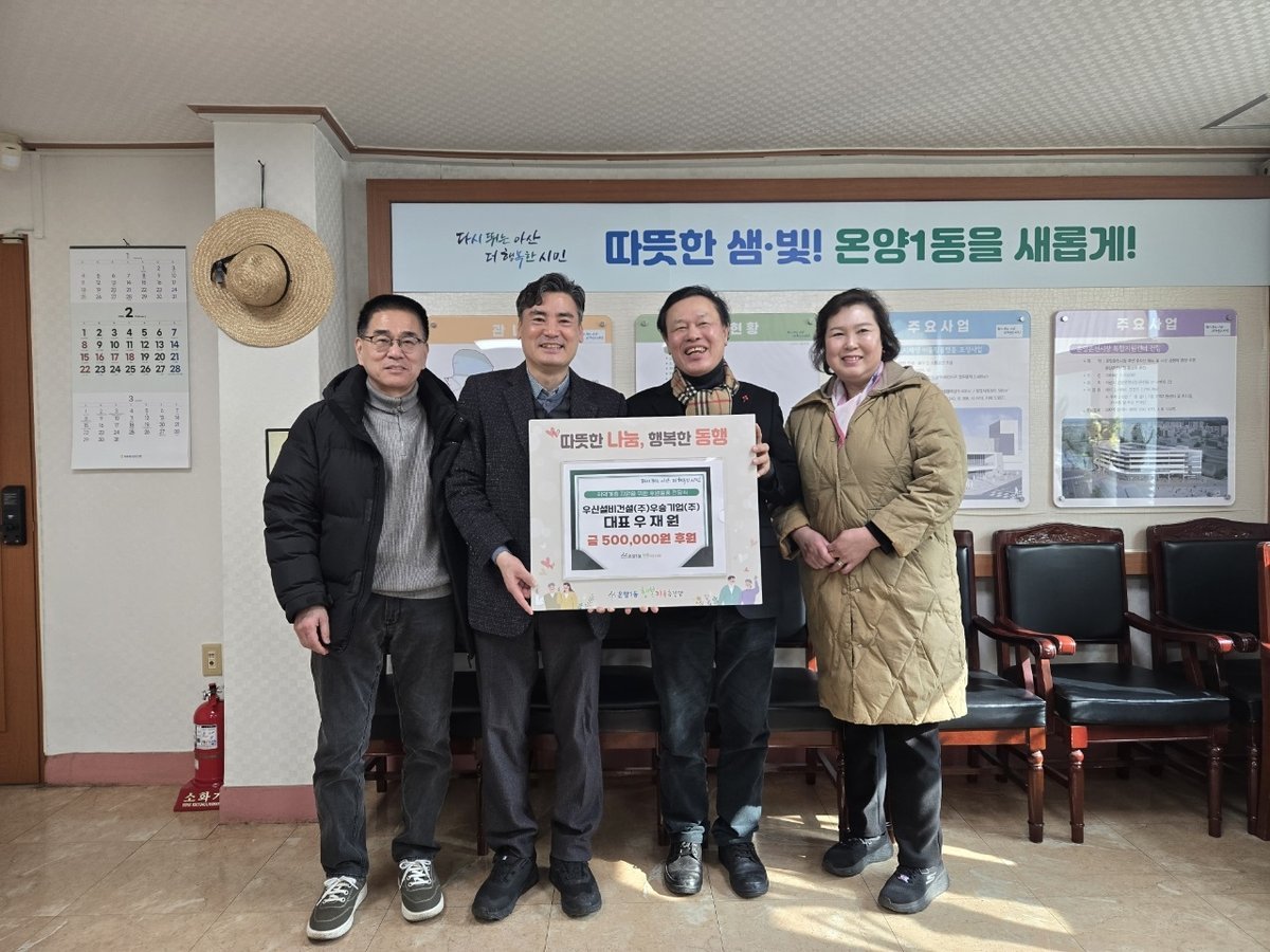 [충청뉴스큐] 온양1동 행복키움추진단은 5일 우승기업㈜·우신설비건설㈜로부터 관내 취약계층 지원을 위한 후원금 50만원을 전달받았다.