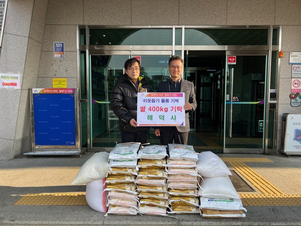 이날 해덕사는 해미면행정복지센터를 방문해 쌀 400kg을 기탁하며 "어려운 이웃들이 따뜻한 식사를 이어가는 데 도움이 되길 바란다"며 나눔의 뜻을 밝혔다.