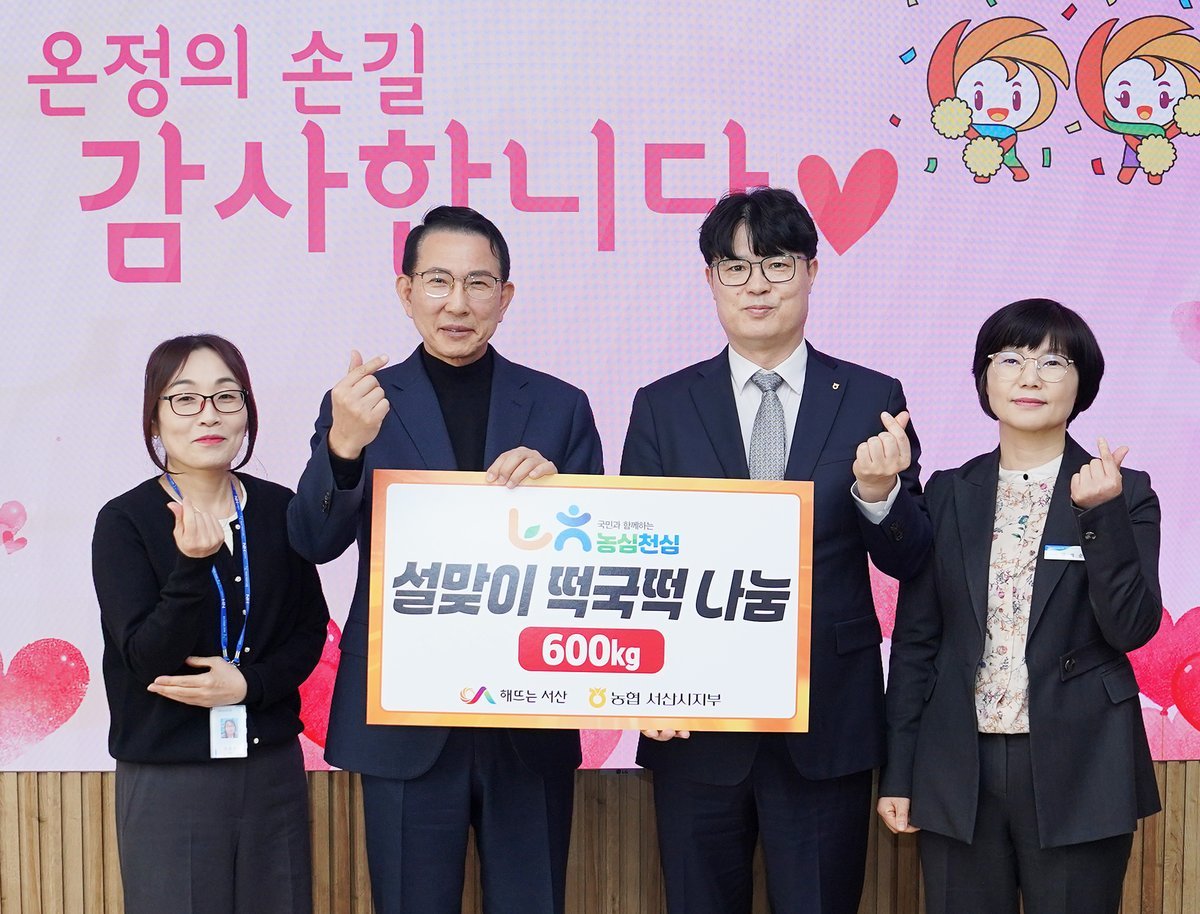 윤희철 NH농협은행 서산시지부장은 "설 명절 소외된 이웃들에게 따뜻한 마음을 전하고자 떡국떡을 전달해 왔다"며 "앞으로도 지역사회에 보탬이 되는 나눔 활동에 앞장서겠다"고 말했다.