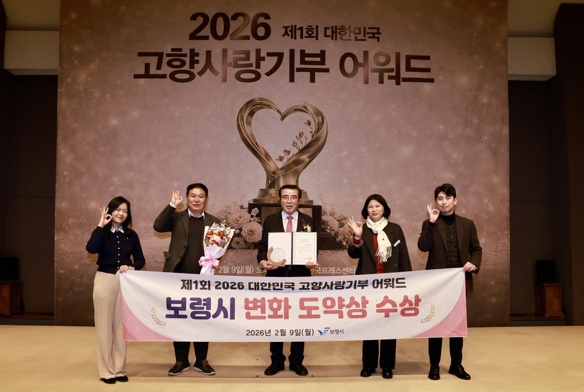 [충청뉴스큐] 보령시는 ‘제1회 2026 대한민국 고향사랑기부 어워드’에서 시 부문 변화도약상을 수상했다고 밝혔다.