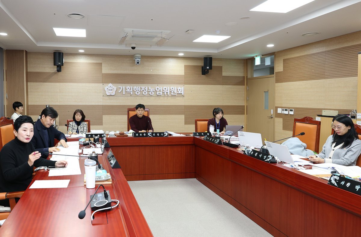 [충청뉴스큐] 아산시의회 기획행정농업위원회가 제264회 임시회 기간 중 2026년도 주요업무계획 보고를 청취하며 연일 저녁 7시가 넘는 시간까지 시시정 주요 사업에 대한 날카로운 심의를 이어가고 있다.