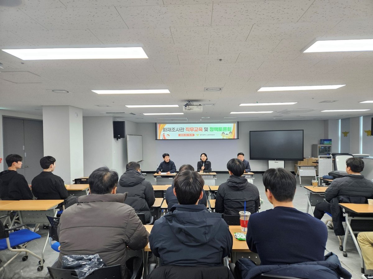 [충청뉴스큐] 광주광역시 소방안전본부는 10일 광주소방학교에서 각 소방서 화재조사관 30여명을 대상으로 ‘화재조사관 역량 강화 직무교육’을 실시했다.