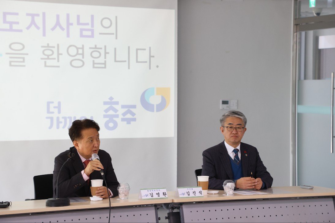 김영환 지사는 "충주시민과의 소통을 통해 다양한 의견들을 청취하고 공감하는 시간을 가졌다"며 "충북과 충주 발전에 필요한 소중한 의견들을 적극 검토해 지속적으로 지원해 나가겠다"고 말했다.