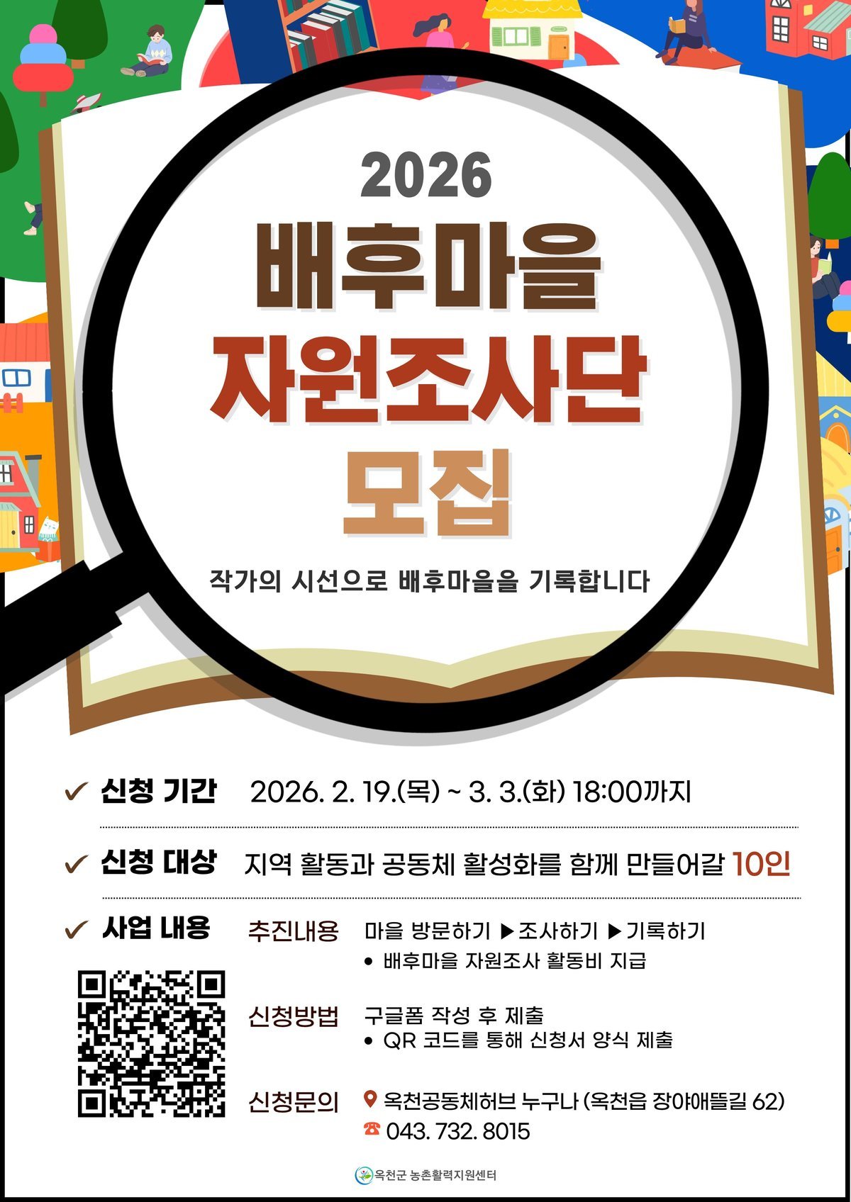 [충청뉴스큐] 옥천군이 2026년 시군역량강화사업의 일환으로 ‘2026년 배후마을 자원조사’에 참여할 마을과 조사단을 모집한다.