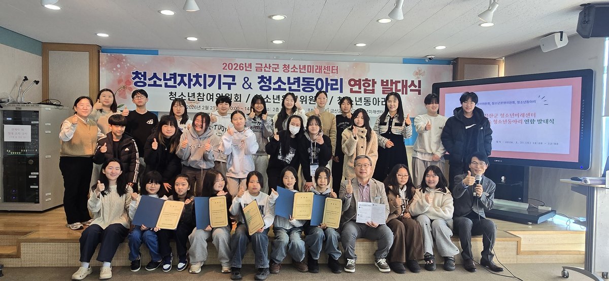 [충청뉴스큐] 금산군청소년미래센터는 지난 21일 센터 2층 다목적강당에서 청소년운영위원회, 청소년동아리, 금산군 청소년참여위원회의 새로운 출발을 알리는 연합 발대식을 개최했다.