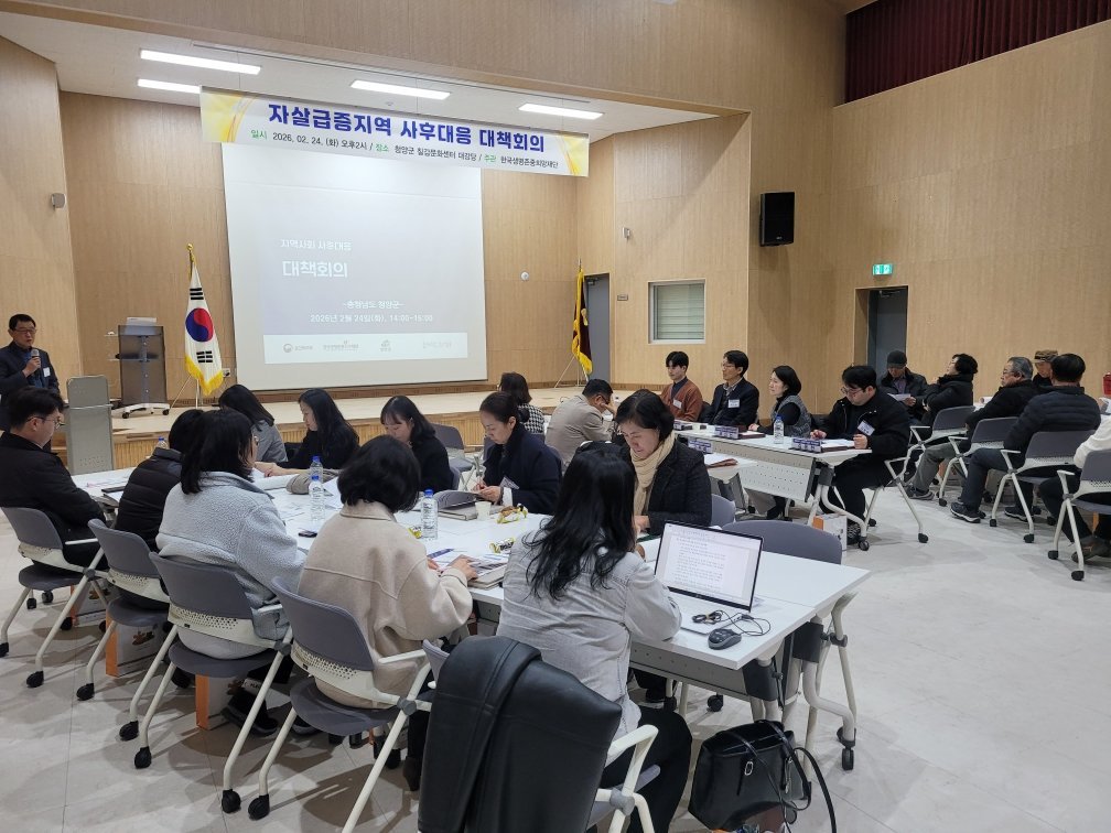 [충청뉴스큐] 청양군이 최근 지역 내 자살 현황에 대응하고 실질적인 예방책을 마련하기 위해 지난 24일 칠갑문화센터에서 ‘청양군 자살급증 사후대책회의’를 개최했다.