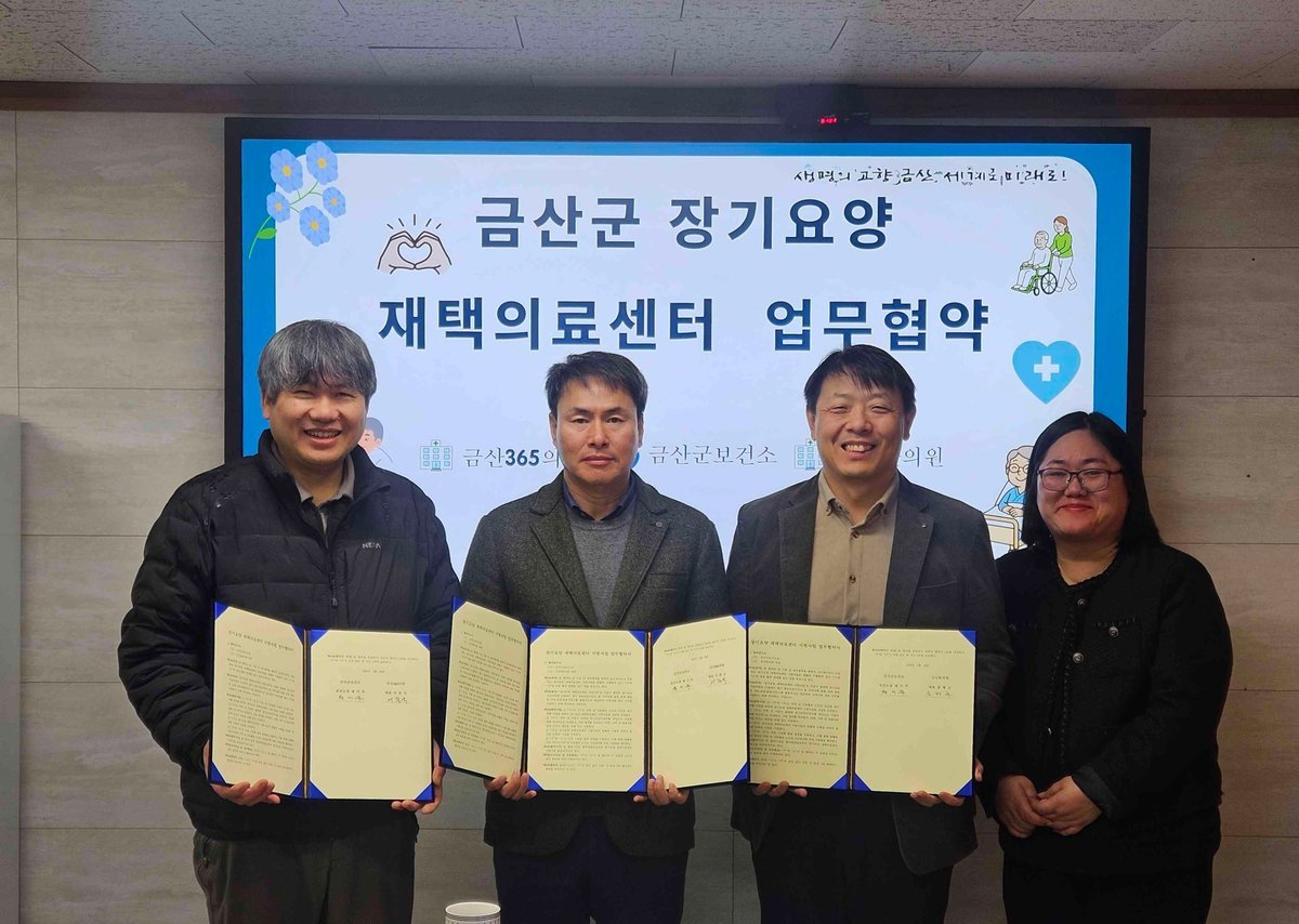 [충청뉴스큐] 금산군보건소는 지난 24일 보건소장실에서 지역 의료기관인 금산365의원, 금산한의원과 장기요양 재택의료센터 시범사업 업무협약을 체결했다.