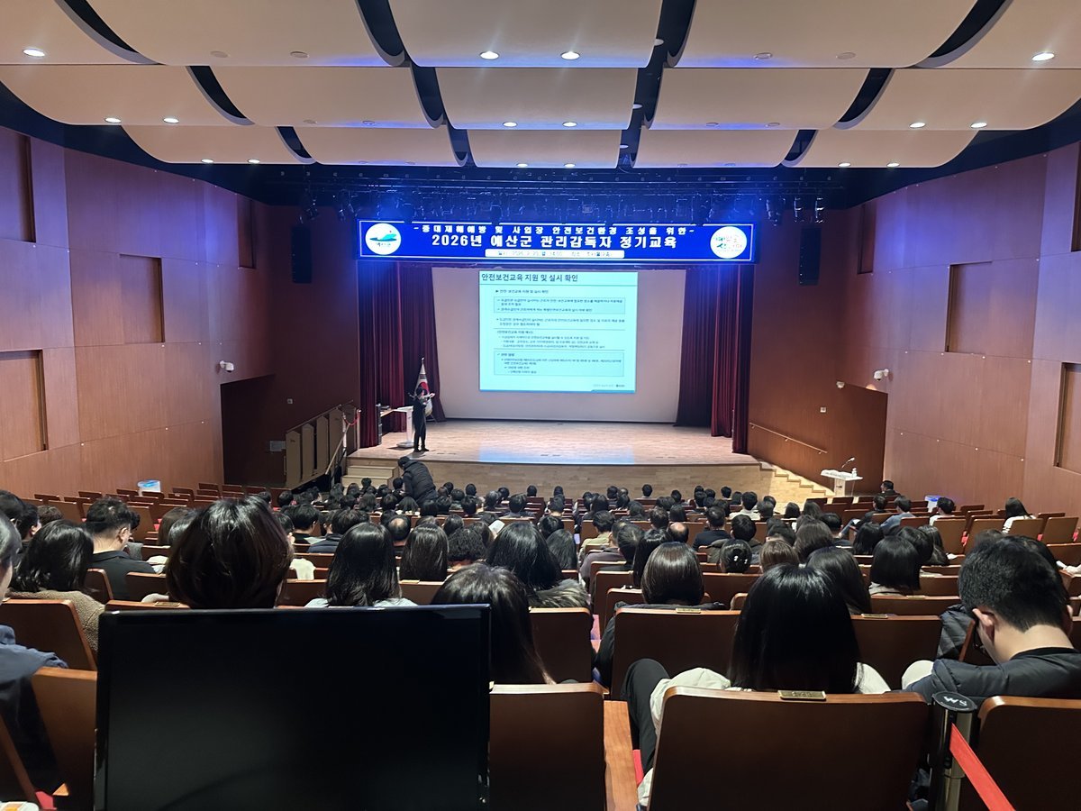 [충청뉴스큐] 예산군은 지난 23일 군청 추사홀에서 중대재해 예방과 관리감독자의 전문성 강화를 위해 '2026년 상반기 관리감독자 집합교육'을 실시했다고 밝혔다.