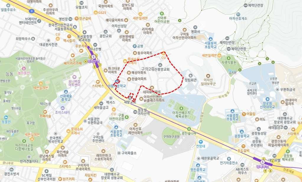 광진구 구의동 46번지 일대는 면적 10만5957.2㎡ 규모로 1종, 2종, 3종 일반주거지역이 혼재된 노후 주거지다.