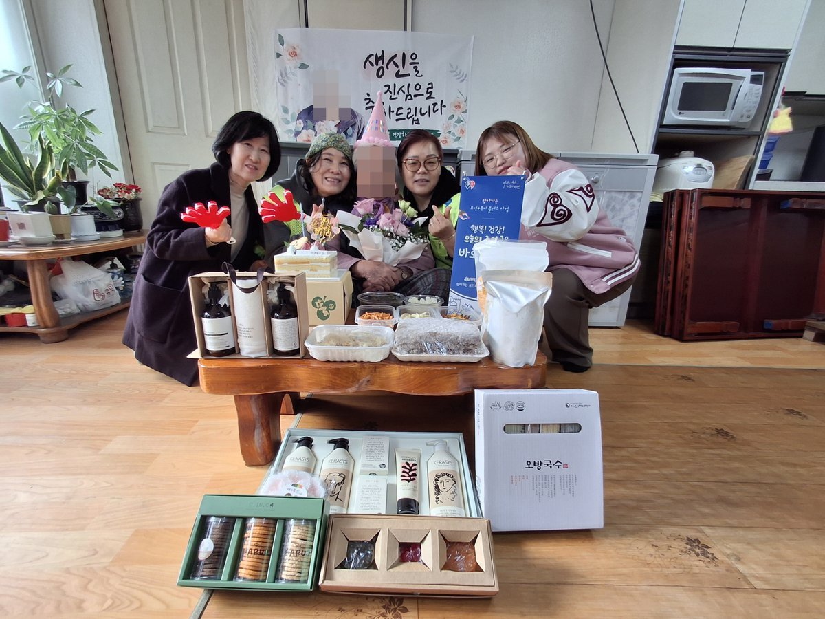 이날 행복키움추진단은 꽃다발과 생신상을 준비했으며 관내 감골뚝배기감자탕에서 밥과 미역국, 반찬 3종을 실비로 지원했다.