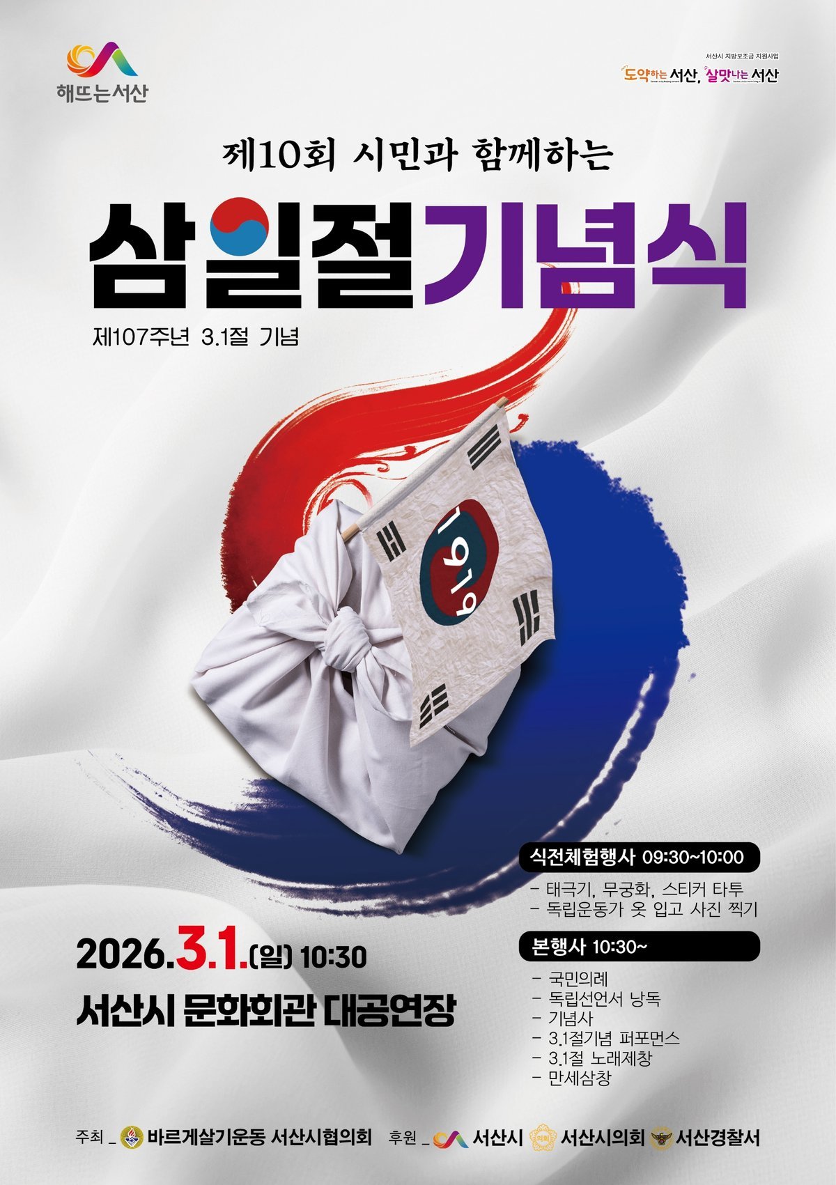 [충청뉴스큐] 충남 서산시는 오는 3월 1일 ‘제10회 시민과 함께하는 3·1절 기념식’을 개최한다고 밝혔다.