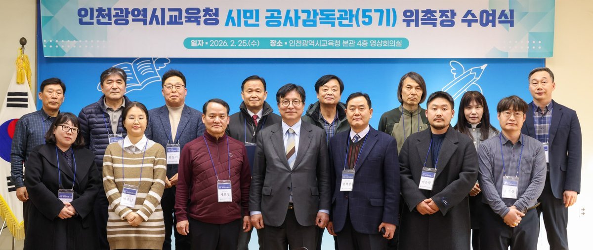 [충청뉴스큐] 인천광역시교육청은 지난 25일 시교육청 영상회의실에서 학교 시설공사의 투명성과 신뢰성을 높이기 위한 ‘시민 공사감독관 5기 위촉식’을 개최했다.