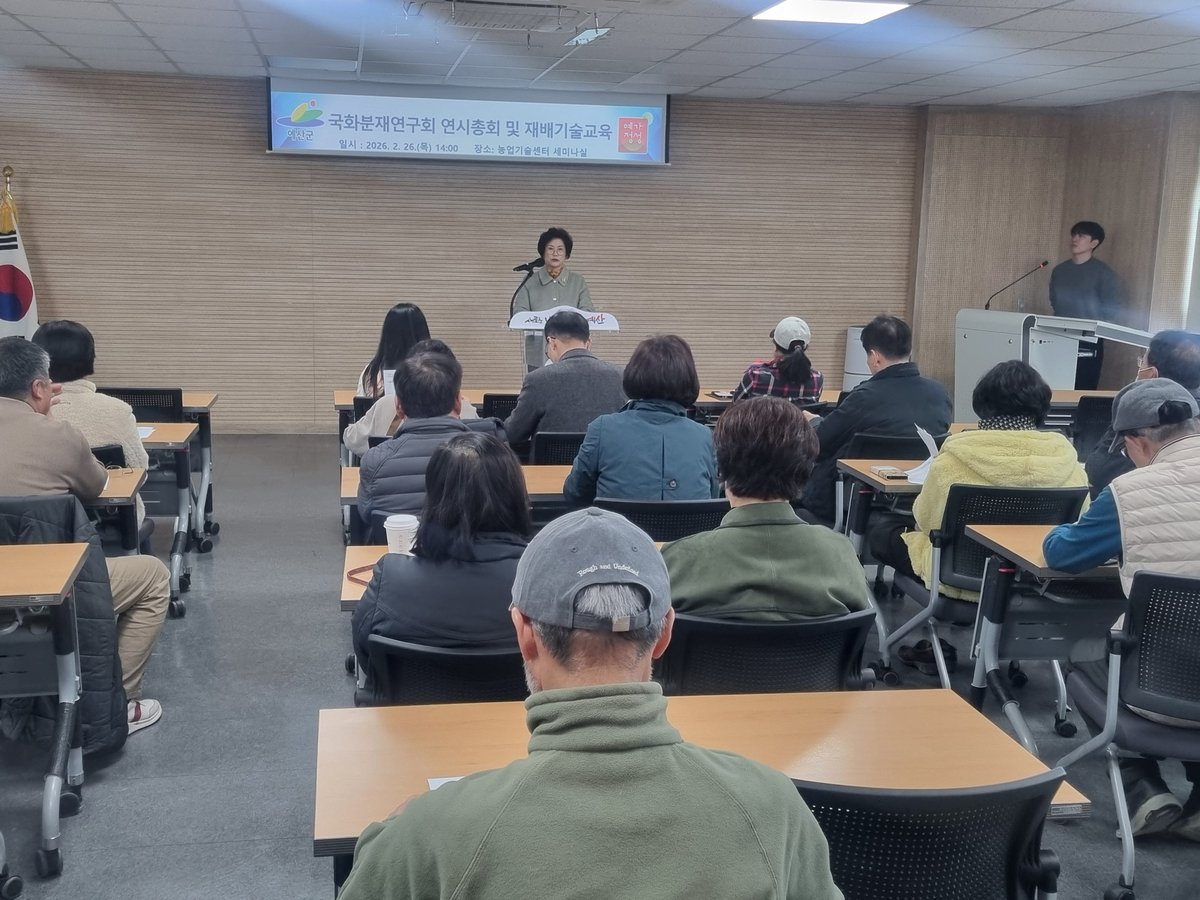[충청뉴스큐] 예산군농업기술센터는 지난 26일 센터 2층 세미나실에서 국화분재연구회 연시총회와 재배기술교육을 실시했다.