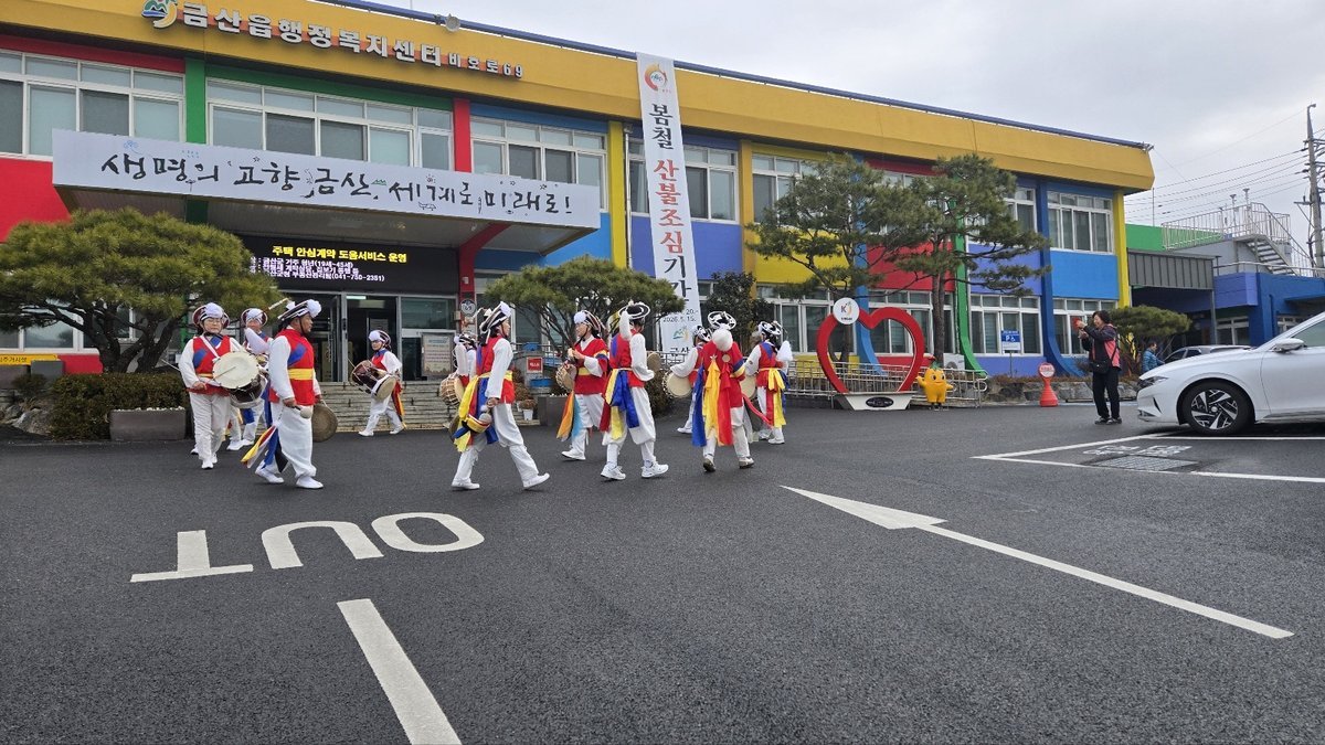 [충청뉴스큐] 전통 농악 가락에 맞춰 지신을 달래고 액운 물리치는 의식 금산읍농악회는 정월대보름을 맞아 2월 27일 금산읍행정복지센터 등 13개소를 순회하는 지신밟기 행사를 진행했다.