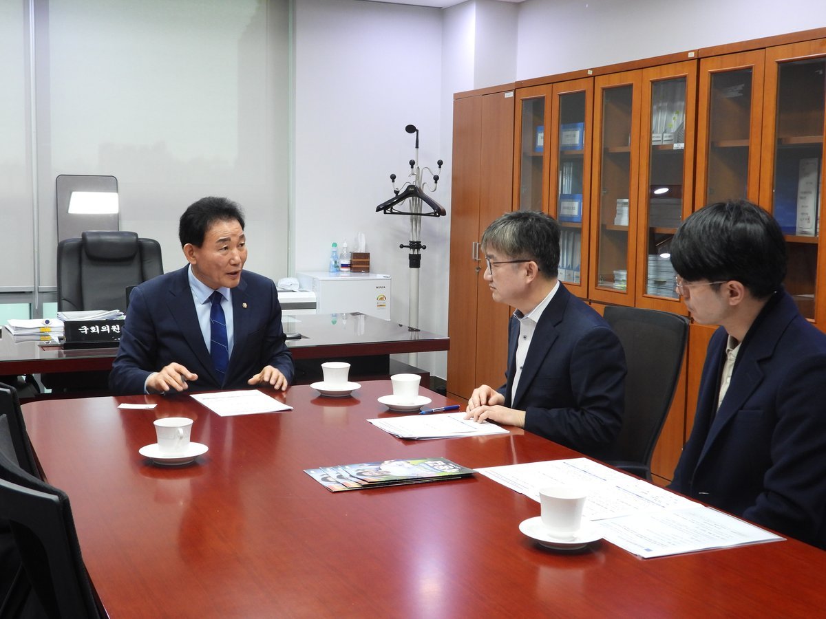 [충청뉴스큐] 국회 국토교통위원회 소속 더불어민주당 박용갑 의원이 3일 국토교통부 이우제 도로국장을 만나 대전충청권 제2외곽순환 고속도로와 대전~보령 고속도로 사업의 제3차 고속도로 건설계획 반영을 건의했다.