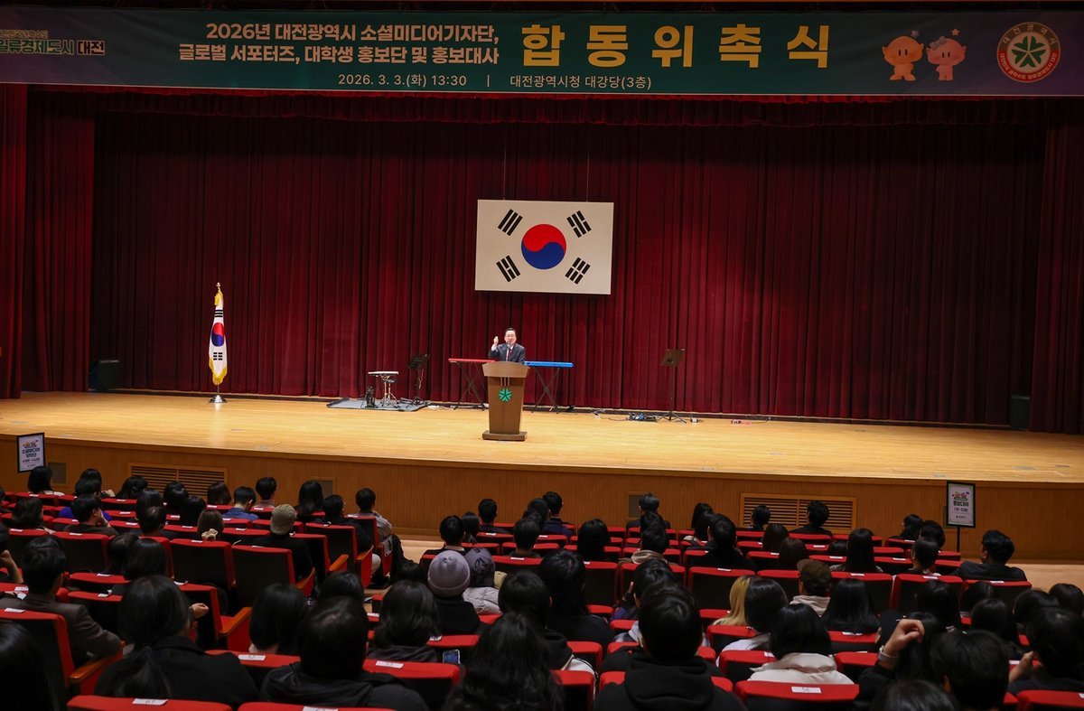 [충청뉴스큐] 대전시는 3일 오후 3시 시청 대강당에서 ‘2026년 소셜미디어 기자단, 글로벌 서포터즈, 대학생 홍보단 및 홍보대사 합동 위촉식’을 개최했다.