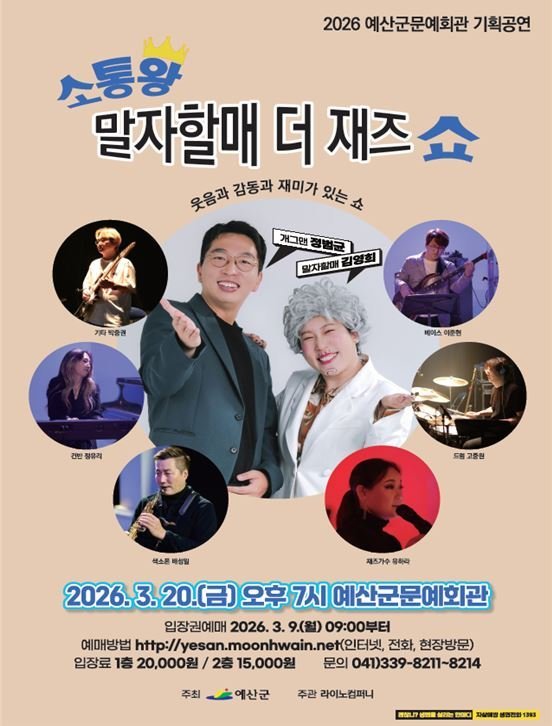 [충청뉴스큐] 예산군은 오는 3월 20일 저녁 7시 문예회관 공연장에서 ‘소통왕 말자할매 더 재즈 쇼’토크 콘서트를 개최한다고 밝혔다.