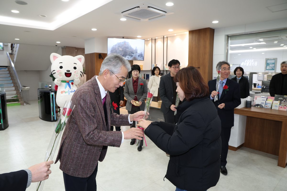 올해 여성의 날 주제인 '베풀수록 커진다'에 맞춰 진행된 이날 행사에서 박종훈 교육감을 비롯한 간부 공무원들은 출근하는 직원들에게 장미꽃과 빵을 직접 전달했다.