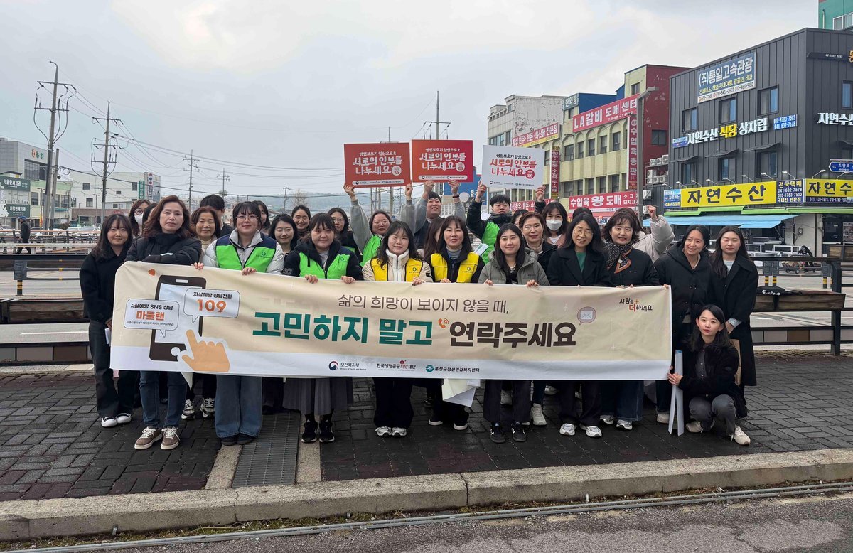 이번 캠페인은 홍성전통시장과 복개주차장 등 주민 이용이 많은 장소에서 진행됐으며 군민들을 대상으로 생명존중 메시지와 상담전화 안내 리플릿을 배부하며 정신건강 지원 정보를 알렸다.