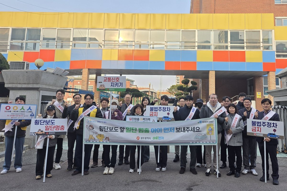 [충청뉴스큐] 광주광역시는 11일 화정남 유촌초등학교 등 지역 초등학교 11곳 주변에서 등굣길 어린이 교통안전 문화 확산을 위한 ‘아이 먼저’어린이 교통안전 합동캠페인을 실시했다.
