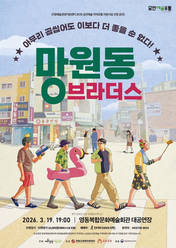 [충청뉴스큐] 영동군문화관광재단은 2026년 공연예술 지역유통사업 선정작인 연극 ‘New 망원동 브라더스’를 오는 19일 오후 7시 영동복합문화예술회관에서 선보인다고 밝혔다.