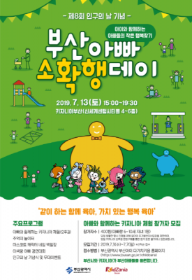 [충청뉴스큐] 부산시는 오는 13일 신세계 센텀시티몰에 위치한 ‘키자니아 부산’에서 제8회 인구의 날을 기념한 ‘2019 부산아빠 소확행 데이’ 행사를 개최한다고 밝혔다.