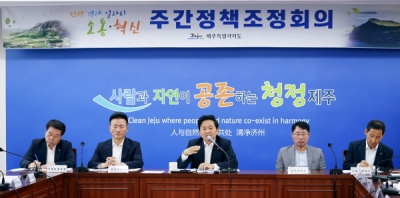 원희룡 제주특별자치도지사는 16일 오전 ‘안정적 상수도 공급 및 하수처리 방안’을 주제로 주간정책 조정 회의를 개최하고, 부서를 뛰어넘는 탄탄한 물 관리 체계를 주문했다.