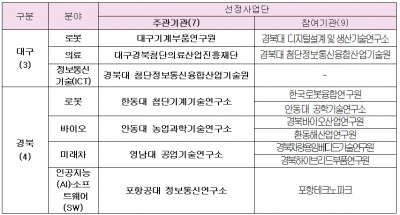 [충청뉴스큐] 대구시와 경북도는 휴스타 혁신아카데미 신규과제 선정평가결과 대구과제는 로봇, 의료, 정보통신기술분야에서 3개 사업단을, 경북과제는 로봇, 바이오, 미래차, 인공지능·소프트웨어분야에서 4개 사업단을 최종 선정했다.