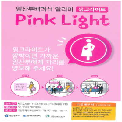 한편 핑크라이트는 부산시가 전국 최초로 시행한 도시철도 내 임산부 배려석 알리미다. 발신기를 소지한 임산부가 도시철도를 타면 임산부 배려석에 설치된 수신기가 깜빡이면서 음성 안내가 송출되어 초기 임산부도 쉽게 배려를 받을 수 있다. 발신기는 16개 구·군 보건소와 도시철도 역무실, 여성병원에서 배부 받을 수 있다.