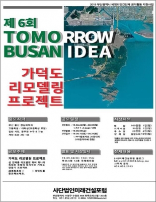 [충청뉴스큐] 부산시는 오는 4일 오후 2시 시청 12층 국제회의장에서 ‘제6회 투모로우 부산 아이디어’ 공모전의 최종발표회와 시상식을 개최한다고 밝혔다.