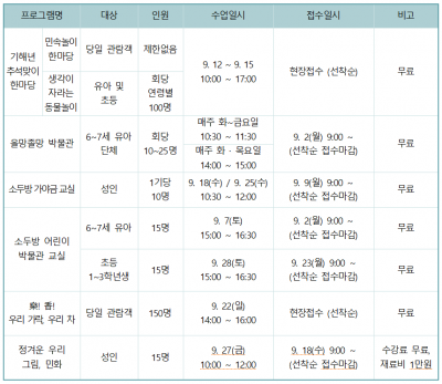 박물관 관계자는 “가야금 연주와 민요 부르기 등을 통해 생활 속에서 전통문화를 즐기면서 이해의 폭을 넓힐 수 있는 즐겁고 유익한 시간이 될 것”이라며 “시민 여러분들의 많은 관심과 참여를 바란다”고 전했다.