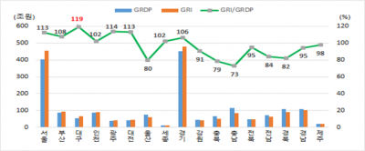 개편결과에 따르면 대구시 소득통계의 특징으로 두 가지가 가장 눈에 띈다. 첫째, 지역내총생산 규모가 58.4조원, 지역총소득이 65.3조원으로 지역내 총생산 대비 지역총소득 비율이 119로 시도 중 가장 높게 나타났다.. 이것은 지역내총생산보다 지역총소득이 더 많다는 것을 의미하며, 지역 내의 총생산액에 지역 외에서 발생한 부가가치가 더해져서 소득을 증가시킨데 기인한 것이다.