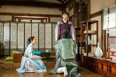 공개된 사진 속 해령이 단호한 눈빛의 이림을 걱정스럽게 바라보고 있다. 이는 이림이 대비 임씨를 찾아가 진실을 묻기로 결심한 상황이라고. 이에 내관 허삼보가 이림의 다리를 붙잡고 대비전에 가지 말라고 간곡하게 애원하는 반면 이림은 그를 외면하고 있어 안타까움을 자아낸다.