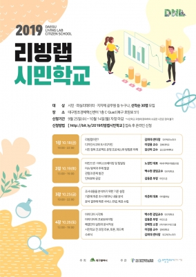 올해로 5회째를 맞는 ‘2019 리빙랩 시민학교’는 대구시민들의 집단지성과 주도적 참여를 바탕으로 사용자 입장에서 지역문제를 발굴하고 문제발견에서 해결에 이르기까지 체계적인 프로세스와 방법론을 제안하고 촉진하는 과정을 통해 시민 퍼실리테이터를 양성하는 과정이다.