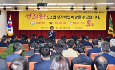 [충청뉴스큐] 대구시는 1일 시청 본관 10층 대회의실에서 간부 공무원 400여명이 참석한 가운데 법무법인 온세상의 김재련 변호사를 초빙해 하반기 직장 내 폭력예방 통합교육을 실시했다.
