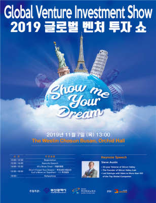 [충청뉴스큐] 부산시는 ‘아시아 제1의 창업도시, 부산’이라는 비전 아래, 혁신의 가치와 창업의 열기를 글로벌로 전파하기 위해 오는 7일 웨스틴조선호텔 부산 2층 오키드홀에서 ‘2019 글로벌 벤처 투자쇼 - Show Me Your dream’을 개최한다.