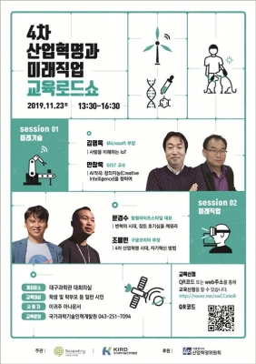 국립대구과학관과 국가과학기술인력개발원이 공동 주관하고 대통력 직속 4차산업혁명위원회가 후원하는 이번 행사는 ‘미래기술’과 ‘미래직업에 대한 특강과 토크쇼로 구성, 4차 산업혁명 시대에 미래기술과 사회 변화상을 이해하고 미래 직업을 탐색하는데 도움을 주기 위해서 마련됐다.