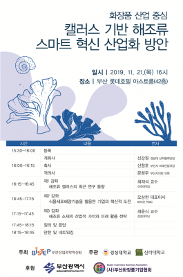 이번 심포지엄은 해양 자원을 미세플라스틱, 방사능 등 오염원으로부터 안전하게 대량생산할 수 있는 기술을 산업화해 해조류 화장품 소재산업을 선도하기 위해 부산시와 지역 대학, 관련 기업들이 함께 한다.