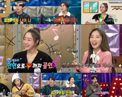 [충청뉴스큐] 사랑에 빠진 서효림, 지숙이 ‘라디오스타’에 출연해 달콤한 수다를 쏟아냈다. 두 사람은 솔직한 러브스토리를 아낌없이 풀어내 시청자 마음까지 달달하게 만들었다. 뿐만 아니라 ‘벌꿀 박사’ 김동완, ‘욕망 아줌마’ 박지윤이 함께해 연예계 대표 금손들의 풍성한 재미를 선보였다. 이 가운데 이번 방송은 최고 시청률 6.5%를 기록하며 4주 연속 동시간대 1위에 올라 의미를 더했다.